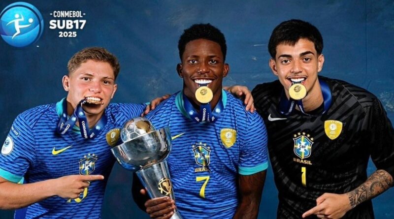 O goleiro Arthur Jampa e os atacantes Dell e Ruan Pablo celebraram a presença do trio de Pivetes de Aço na principal competição de base do planeta.