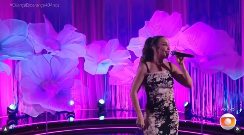 A cantora Ivete Sangalo apresentou cinco canções durante a edição comemorativa dos 40 anos do “Criança Esperança”, realizada nesta segunda-feira (27).