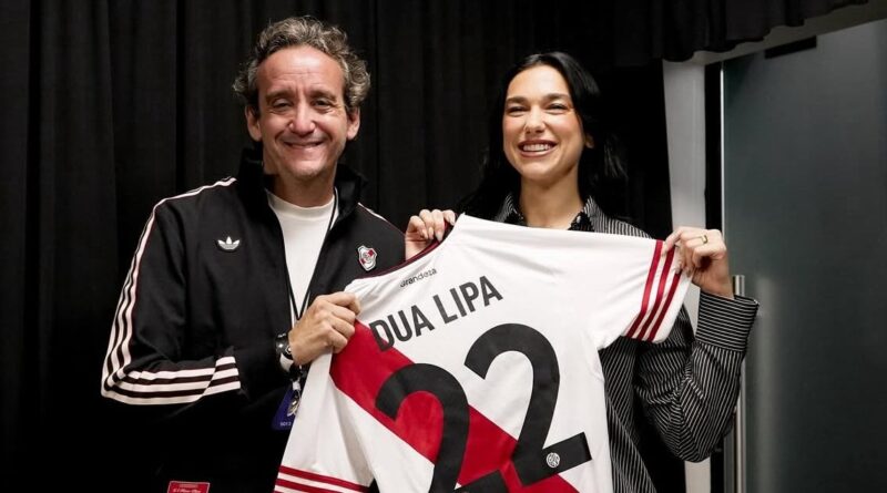 Dua Lipa recebe camisa do River Plate em estreia de turnê na América Latina