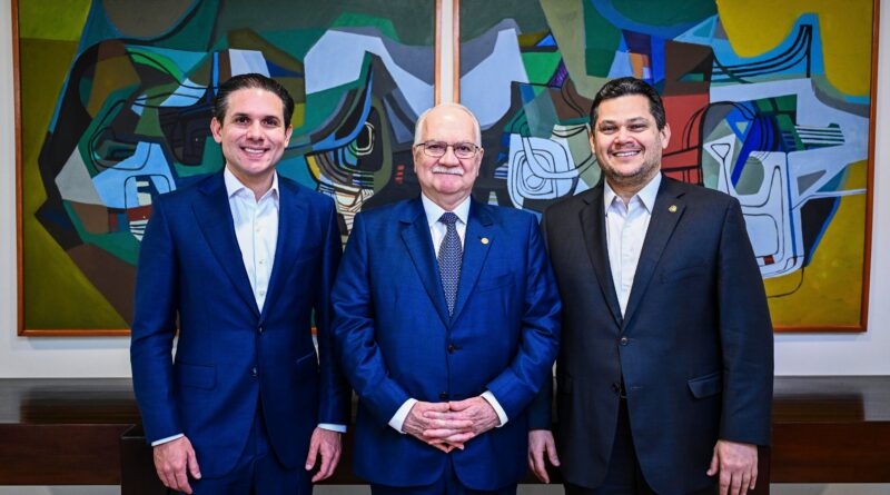 Presidente do STF, Edson Fachin, ladeado pelos presidentes da Câmara, Hugo Motta, e do Senado, Davi Alcolumbre