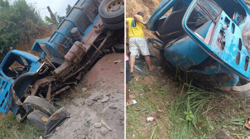 Segundo informações do Blog do Marcos Frahm, parceiro do Bahia Notícias, a caçamba tombou na estrada na estrada de terra neste sábado (13).