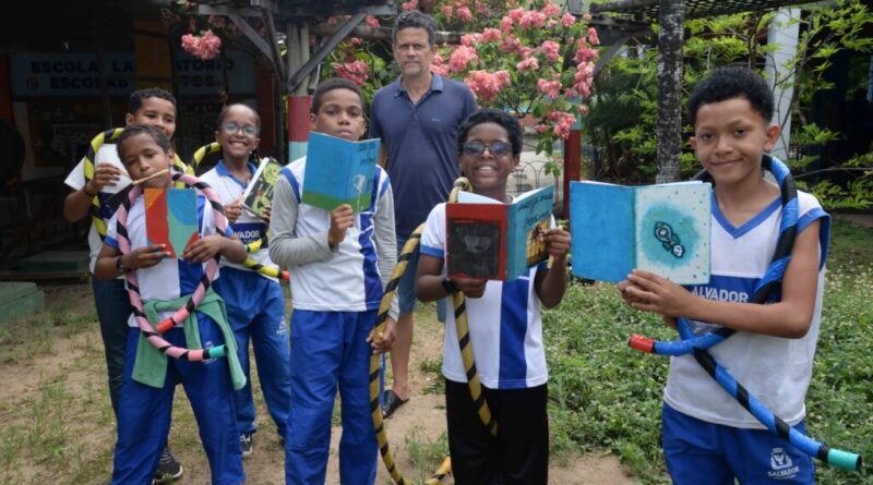 Aos 11 anos, o jovem Gustavo Magalhães dos Santos estuda no 5º ano da Escola Municipal Rui Barbosa, em Paripe, e contou que a elaboração do livro foi pura diversão. “Ah, foi muito divertido, maneiro, eu amei muito! Me sinto muito feliz por deixar minha lembrança aqui na Escolab através desse projeto”.