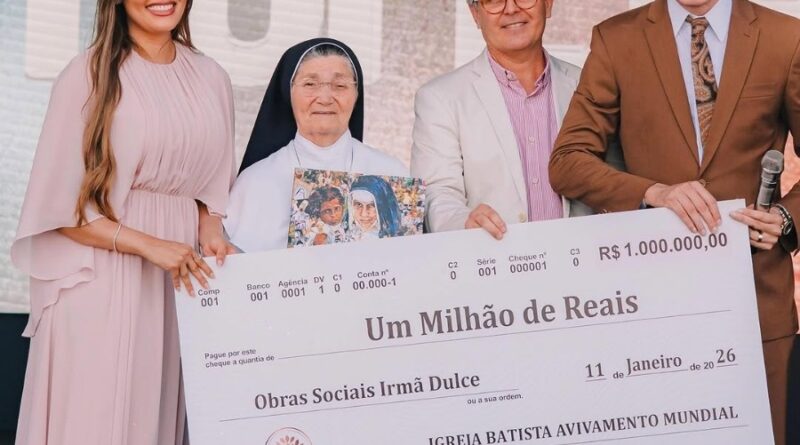 Bispo Bruno Leonardo doa R$ 1 milhão às Obras Sociais Irmã Dulce durante evento em Salvador