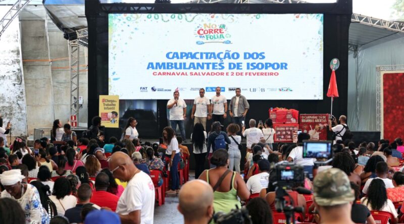 Os 4 mil ambulantes credenciados para atuar na Festa de Iemanjá e no Carnaval de Salvador 2026 participam, nesta quarta-feira (28), de um curso de capacitação profissional promovido pela Prefeitura, por meio da Secretaria Municipal de Ordem Pública (Semop), na Arena A Tarde, localizada na Avenida Tancredo Neves.