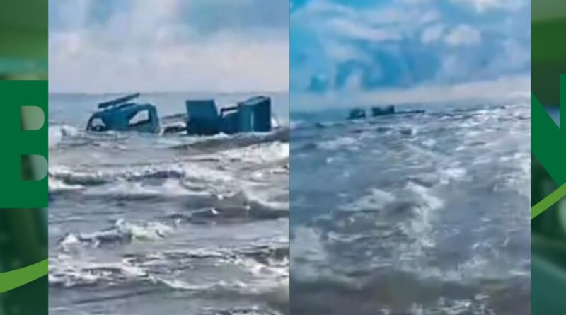 VÍDEO: Caminhão que transportava geradores para Festa de Iemanjá cai no mar após acidente em curva de Ituberá