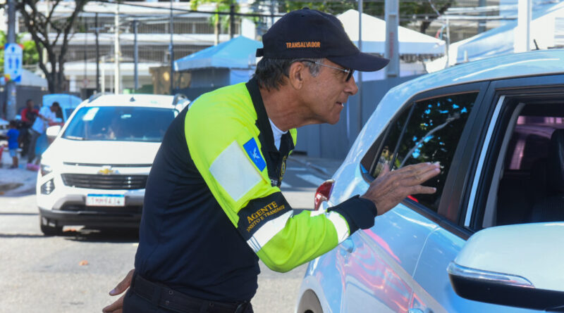 Durante a folia momesca, agentes da Transalvador atuam em pontos estratégicos para organizar o trânsito e assegurar deslocamentos mais seguros para todos.