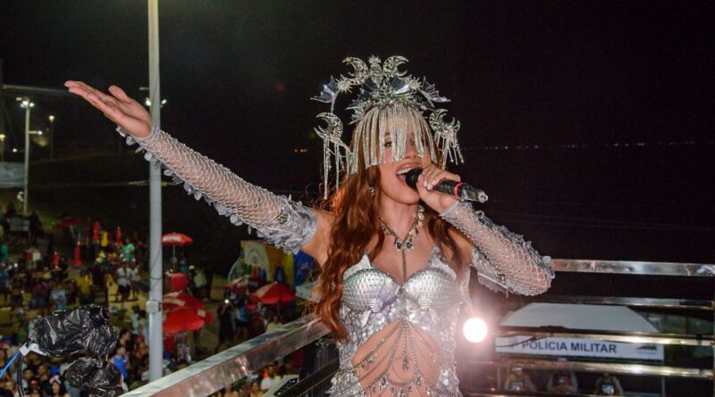 Cantora abriu desfile no circuito Barra-Ondina ao som de sucessos e manteve tema do zodíaco no Carnaval 2026