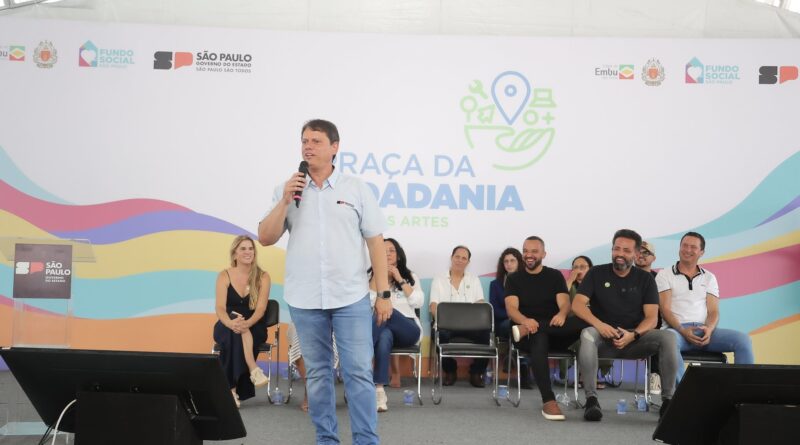 O governador participou neste sábado da inauguração de uma praça no município de Embu das Artes, na grande São Paulo. Por ter integrada a ela uma nova Escola de Qualificação Profissional, com cursos gratuitos de capacitação nas áreas de moda e arte, beleza e bem-estar, gastronomia, informática, construção civil e administração, o espaço recebeu o nome de Praça da Cidadania e será coordenado pelo Fundo Social do Estado. O local também dispõe de ambientes equipados para a prática de esportes, lazer e convivência comunitária.