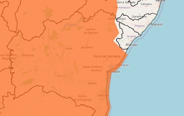 As 417 cidades da Bahia estão sob alerta laranja para chuvas intensas, conforme informou o Instituto Nacional de Meteorologia (Inmet) na manhã desta terça-feira (24). O aviso é válido até a noite de sexta-feira (27). Além do alerta laranja, os municípios de Caravelas, Ibirapuã, Lajedão, Mucuri e Nova Viçosa, no Extremo Sul do estado, estão sob alerta vermelho, classificação que indica grande perigo.