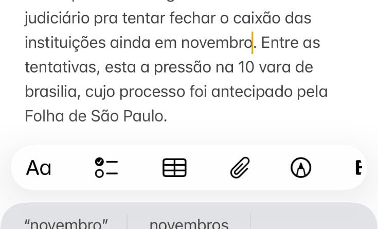 “Mesmo após o negócio entre Master e Brb ter sido negado ha dois meses, o tema continua mais vivo do que nunca. Adversários e opositores das duas partes tentam de toda forma pressionar órgãos de controle e judiciário pra tentar fechar o caixão das instituições ainda em novembro. Entre as tentativas, esta a pressão na 10 vara de brasilia, cujo processo foi antecipado pela Folha de São Paulo”.