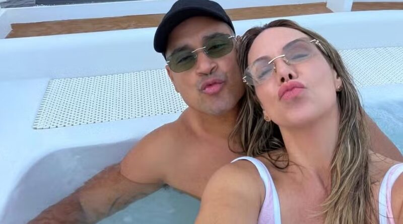 Nos registros compartilhados pelo artista, ele aparece ao lado de Carla em uma sauna e na hidromassagem do navio.