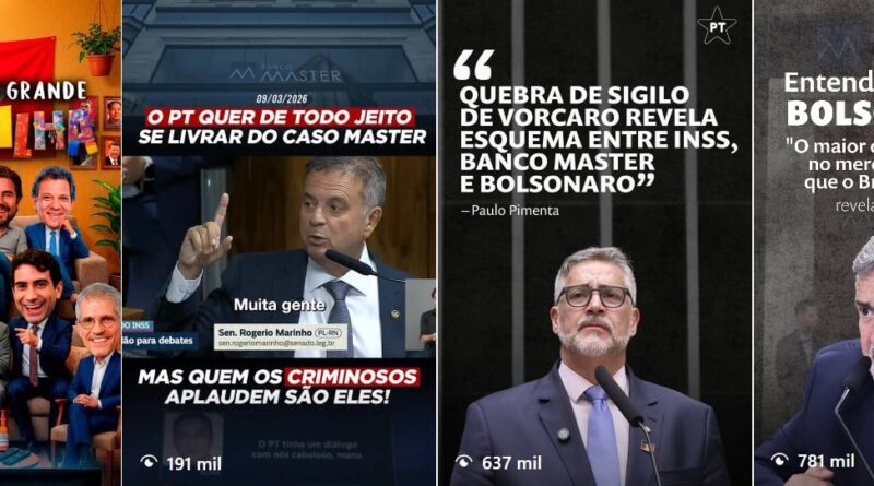 “Entenda o esquema BolsoMaster: O maior esquema de golpe no mercado financeiro que o Brasil conheceu”, diz uma publicação do PT, associando o sobrenome Bolsonaro às fraudes. “(O esquema) foi gestado, criado, protegido dentro do governo Bolsonaro”, diz o deputado federal e ex-ministro da Comunicação Social do governo Lula, Paulo Pimenta (PT-RS), no recorte publicado pelo partido nas redes sociais.