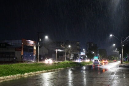 A chuva voltou a cair em Vitória da Conquista, no sudoeste da Bahia, no final da noite deste sábado (14). Imagens registradas pelo Blog do Anderson, parceiro do Bahia Notícias, mostram enxurradas em vias importantes do município, como as avenidas Luís Eduardo Magalhães e Juracy Magalhães.