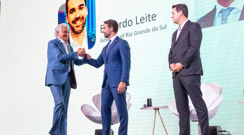 Ronaldo Caiado, Eduardo Leite e Ratinho Júnior em evento em São Paulo em janeiro