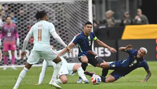 Brasil e França se enfrentaram em um amistoso internacional na tarde desta quinta-feira (26). No jogo, disputado no Gillette Stadium, em Boston, a seleção francesa venceu por 2 a 1. Kylian Mbappé balançou as redes no primeiro tempo, enquanto Hugo Ekitiké ampliou na segunda etapa. Bremer recebeu o cruzamento de Luiz Henrique para diminuir para a Seleção Brasileira