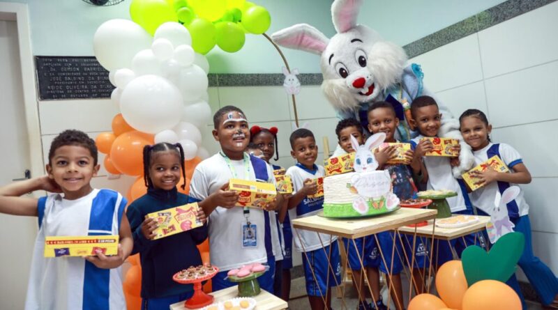 Cerca de 130 mil caixas de chocolates foram distribuídas para estudantes da rede municipal, em ação realizada nesta quarta-feira (1º), nas unidades de ensino da capital baiana. A celebração foi especial também para os 105 alunos do Centro Municipal de Educação Infantil (Cmei) Joaquim Santos, na Boca do Rio, que tiveram uma festa com decoração temática, doces e brincadeiras variadas.