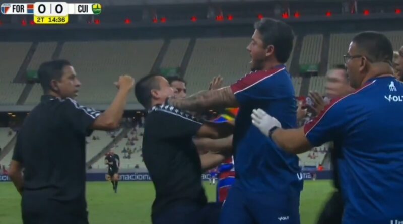 VÍDEO: Thiago Carpini e Eduardo Barros trocam empurrões e são expulsos no duelo entre Fortaleza x Cuiabá na Série B