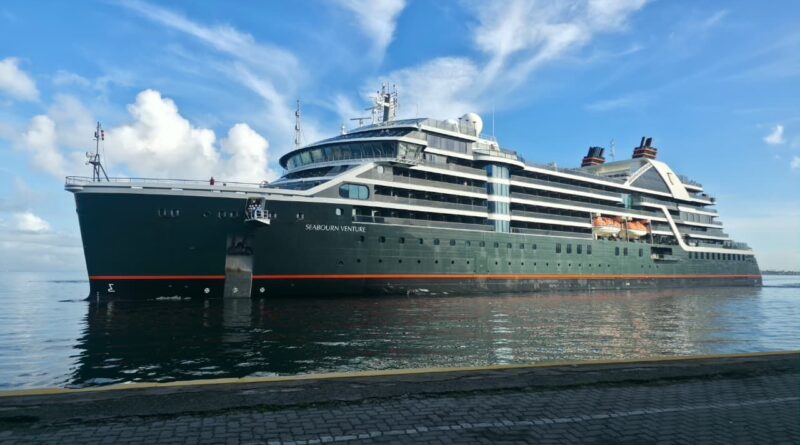 O Seabourn Venture, embarcação de ultraluxo operada pela Seabourn Cruise Line, fez parada em Salvador nesta terça-feira (7), durante uma travessia internacional de 21 dias que liga o Rio de Janeiro a Barcelona.